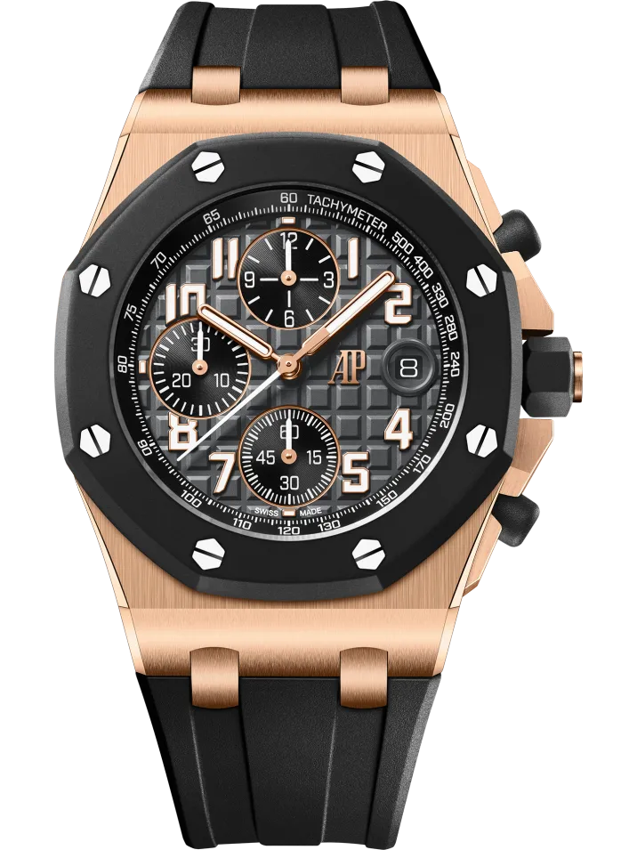 Iconic Styling: The Audemars Piguet Royal Oak Off Shore A002CA.01 Super Clone combines style and functionality with its stunning 18-carat pink gold case and black dial. A perfect blend of sophistication and sportiness.