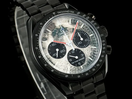 - Black Liquid D Coating: The Omega Black Liquid D Speedmaster features a striking black PVD coating, providing a sleek and durable finish that adds a futuristic look to this iconic chronograph.