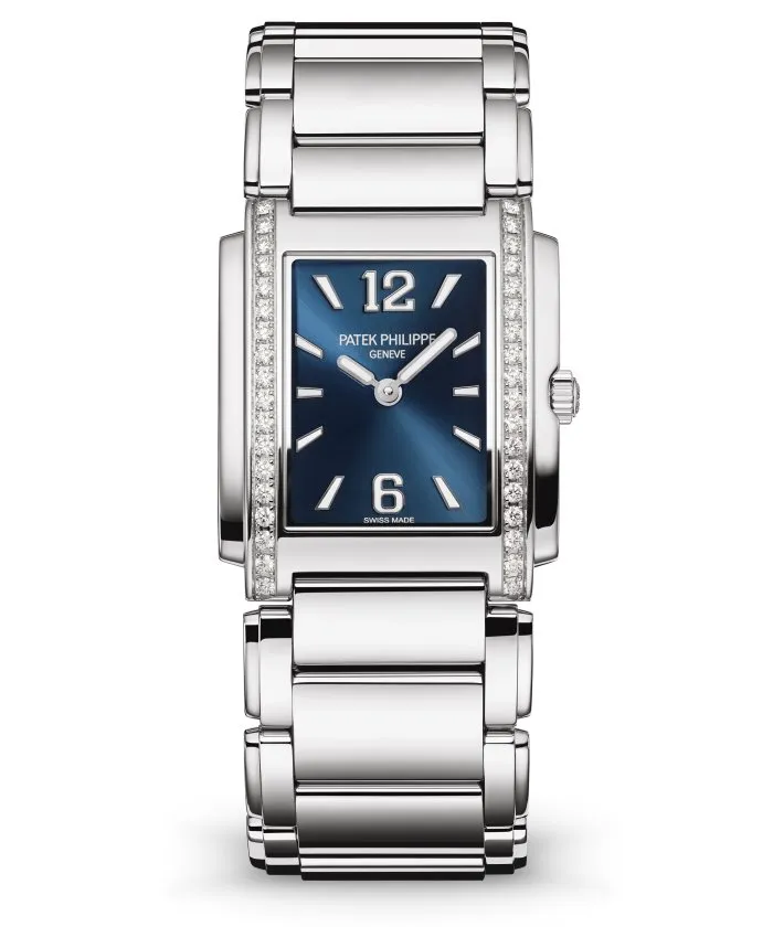 PATEK PHILIPPE 4910/1200A – TWENTY~4 is a highly contemporary watch created to accompany every moment of eclectic and vibrant lifestyles, 24 hours from day to night. It is available in two distinctive cases: an Art-Deco-inspired cuff design with quartz movement and a round case with self-winding movement.