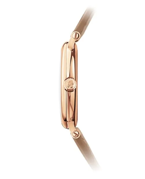 PATEK PHILIPPE 7200R – CALATRAVA With its uncluttered dial on which nothing disturbs the flow of hours and minutes, along with its Officer’s-style case with straight lugs, this rose gold timepiece embodies the quintessence of Calatrava’s feminine aesthetic. The ultra-thin self-winding movement ensures the watch’s elegant slenderness on the wrist.