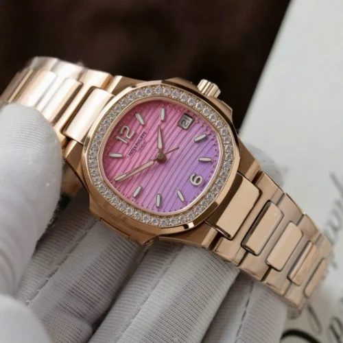 Patek Philippe Nautilus 7010R Imitation Watch Purple Pink Dial Metal Wire Bracelet GR Factory 32mm