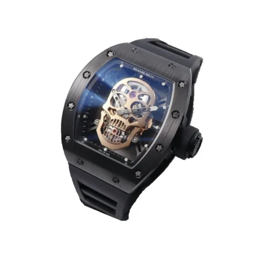 The Richard Mille RM 052 Replica Watch ‘Skull’ Tourbillon in Rose Gold combines avant-garde design with fine craftsmanship. The distinctive skull motif is crafted within the robust rose gold case, offering a unique blend of artistic expression and technical excellence. This limited edition timepiece, with its bold design and rare materials, stands as a highly sought-after piece for collectors who value both innovation and exclusivit