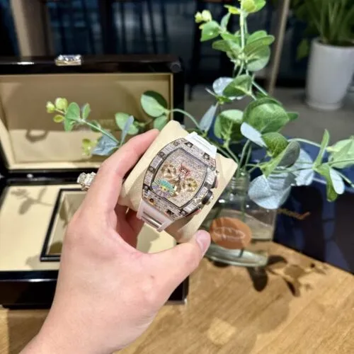 Richard Mille RM011 Full Diamond with White Rubber Strap