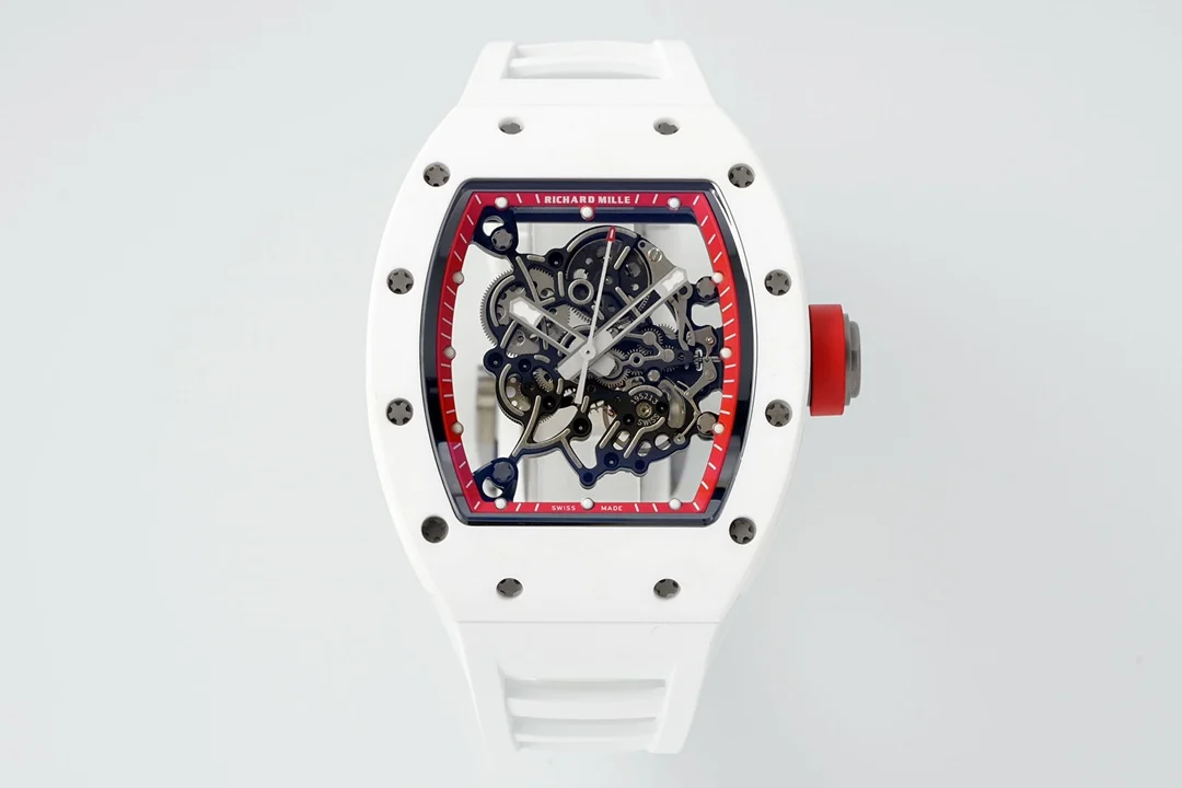 Richard Mille RM055 APSF Red Cer/RU Skeleton Dial On White Rubber Strap