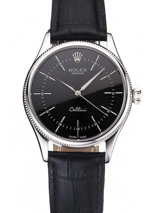 The Rolex Cellini 39mm Black Dial 622654 Super Clone is a meticulously crafted luxury timepiece with fine detailing and precise timekeeping. This not only exhibits high-grade craftsmanship, but also boasts of a refined aesthetic charm, making it a perfect accessory for any occasion. The automatic movement along with the power reserve feature ensures ideal time synchronization while the water resistance brings in versatility suitable for a dynamic lifestyle.
