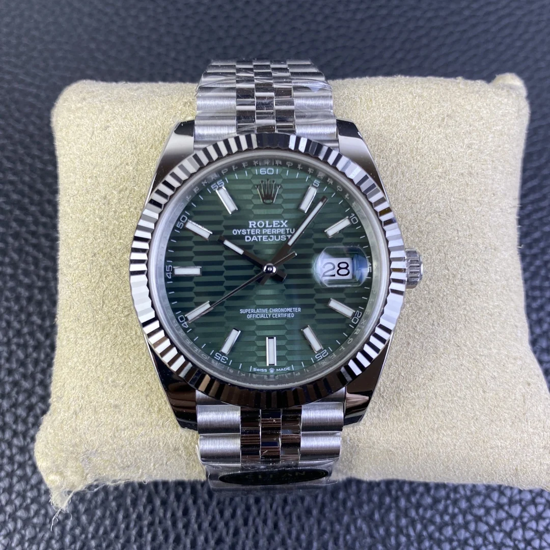 Rolex DateJust 41mm 126334-0030 Clean Factory 1:1 Green Fluted Dial on SS Jubilee Bracelet Super Clone