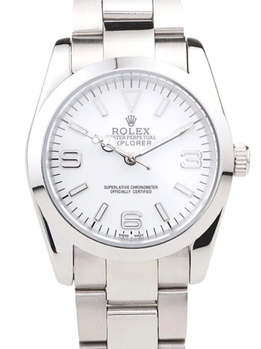 Iconic Styling: The Rolex Explorer 37mm, with its classic and undeniably sleek design, is the perfect blend of rugged durability and timeless style. This Super Clone model has a silver dial and bezel, and is crafted to match the original in exacting detail.