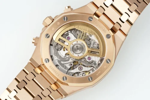 - Hands: Royal Oak hands in rose gold with luminescent coating
