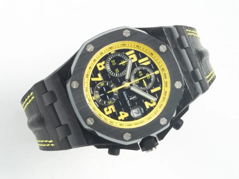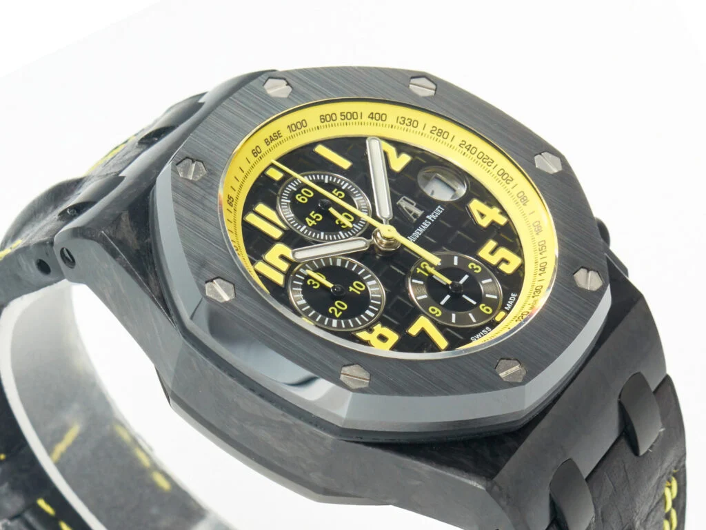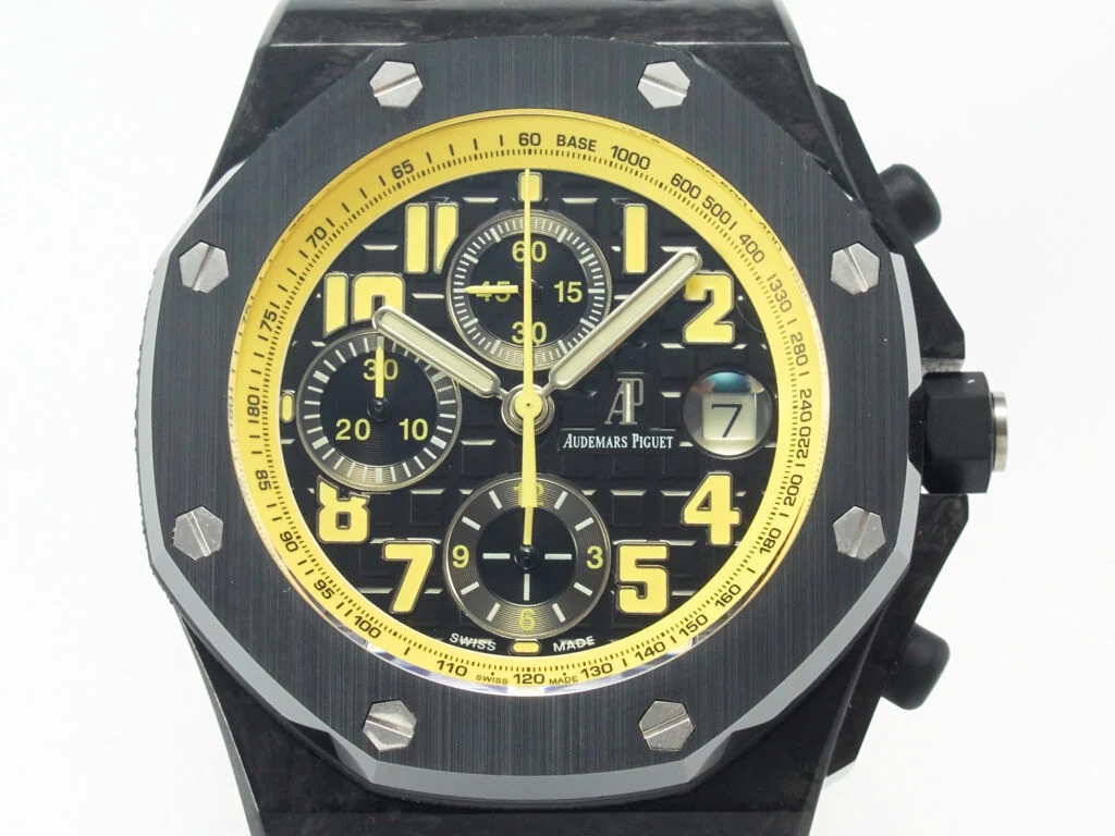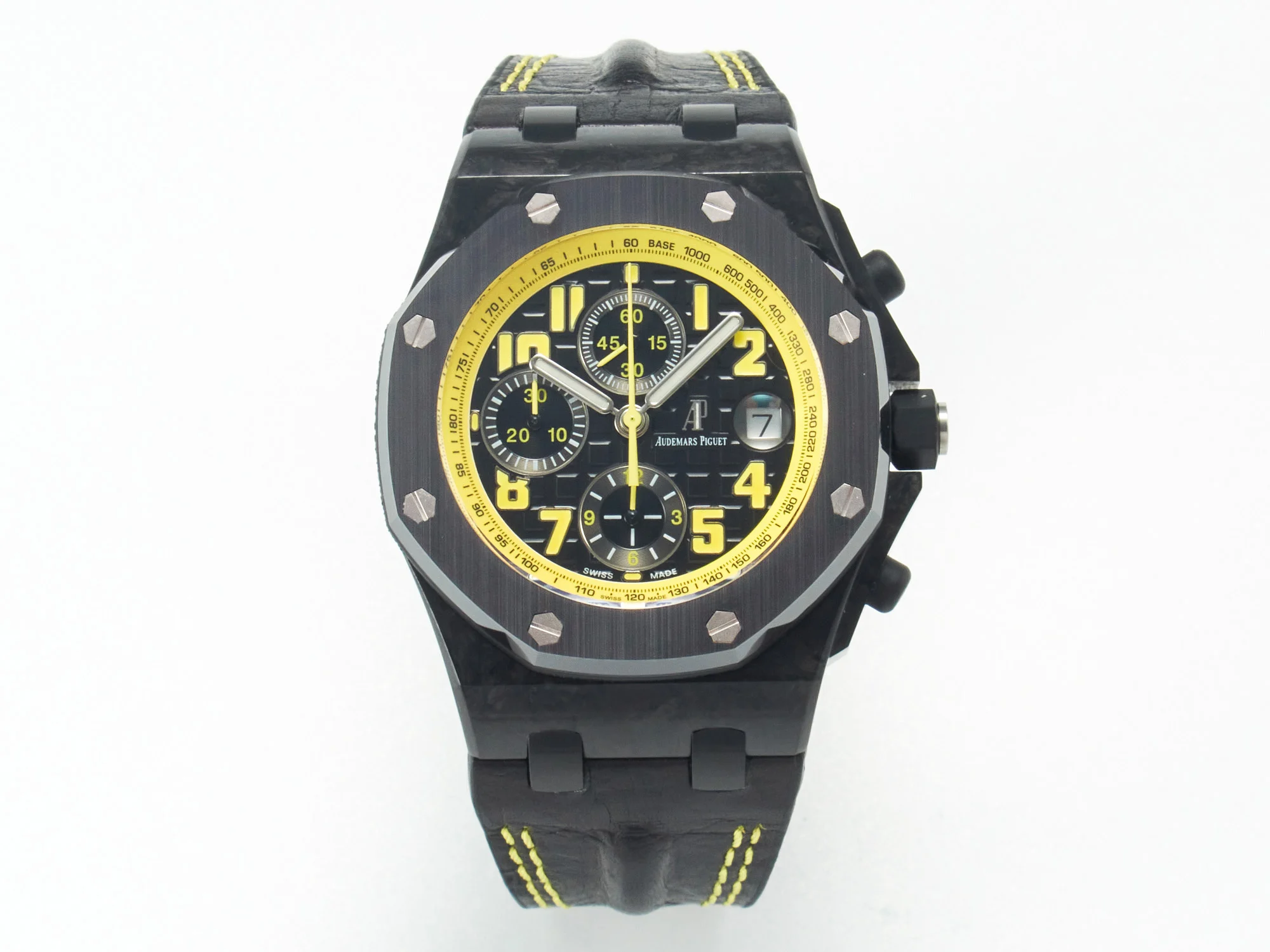 Royal Oak Offshore Bumble Bee Forged Carbon 1:1 JF Best Edition on Leather Strap A7750 w/ Cyclops & DW Mod